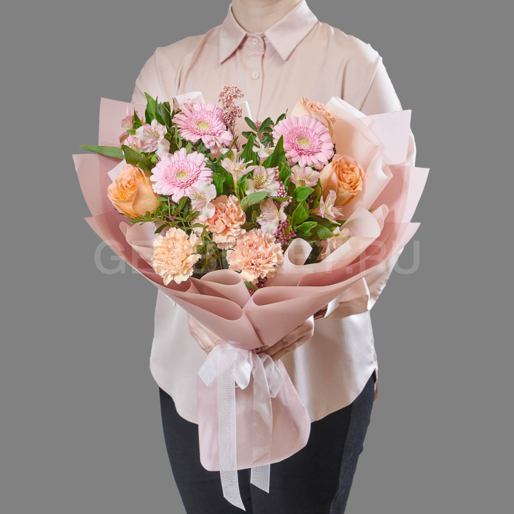 Возможны минимальные отличия букета от фотографии и допустимы отличия по цветовой гамме, так как цветы являются природным материалом и собираются вручную