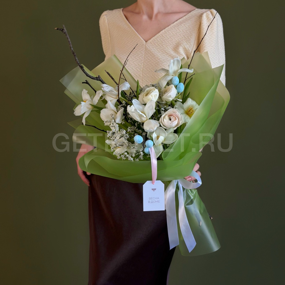 Пасхальный букет из орхидеи, вербы, генисты и лимониума с эустомой9 180 ₽Пасхальный букет из орхидеи, вербы, генисты и лимониума с эустомой 9 180 ₽ -